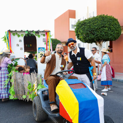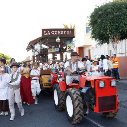 Tras el chupinazo de salida, las cuatro carretas participantes partieron al son de las agrupaciones folclóricas que pusieron la banda sonora a todo el recorrido. Así, las Isas, Folías, Malagueñas… impregnaron las calles Mogán, avenida de Tunte, de Gáldar, calle Hernández González, y la avenida de Tejeda hasta llegar a la plaza de San Fernando.
