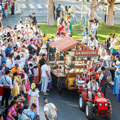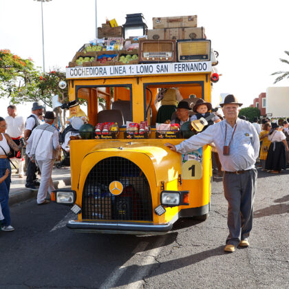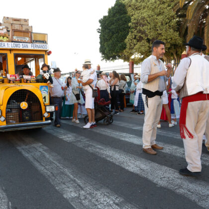 La tarde contó con la participación de más de 2.000 personas que, ataviados con vestimenta tradicional, participaron del recorrido que estuvo encabezada por la carreta El Coche de Hora, con la agrupación El Cañizo; El Tablero la Agrupación Roca Canaria y su cuerpo de baile Horizonte Maspalomas; la carroza Telde ‘La Tartana’ con los Tartaneros; El Patronato (San Fernando) con la agrupación folclórica La Parranda Las Dunas; y la carreta La Quesera con el grupo Los Fiesteros. Las Agrupación Folclórica alegraron todo el recorrido con la música tradicional canaria y tras llegar a la Plaza de San Fernando los grupos de romeros, asociaciones y colectivos depositaron su ofrenda ante la puerta de la Iglesia de San Fernando, ofrenda que será entregada a la Cáritas.