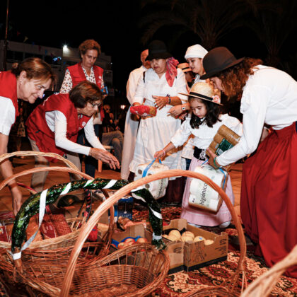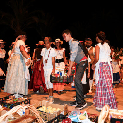 Maspalomas celebró hoy su ofrenda-romería en honor a San Fernando renovando su recorrido e incrementando la participación de carretas, agrupaciones y romeros que han formado parte de la comitiva. A las 18:00 horas partieron de la Plaza de Timanense, seis carretas con sus respectivas Agrupaciones Folclóricas que desde bien temprano afinaban sus instrumentos y comenzaban a quemar el carbón y encendían sus planchas con las que cocinar la carne de cochino, los pinchitos o las chuletas que repartían por el camino a los romeros, y compartían con los curiosos que se distribuían a ambos lados de las calles por donde pasó la comitiva. En el menú no faltaron los huevos duros, el queso de la tierra, el bizcocho ni, por supuesto, las papas arrugás.