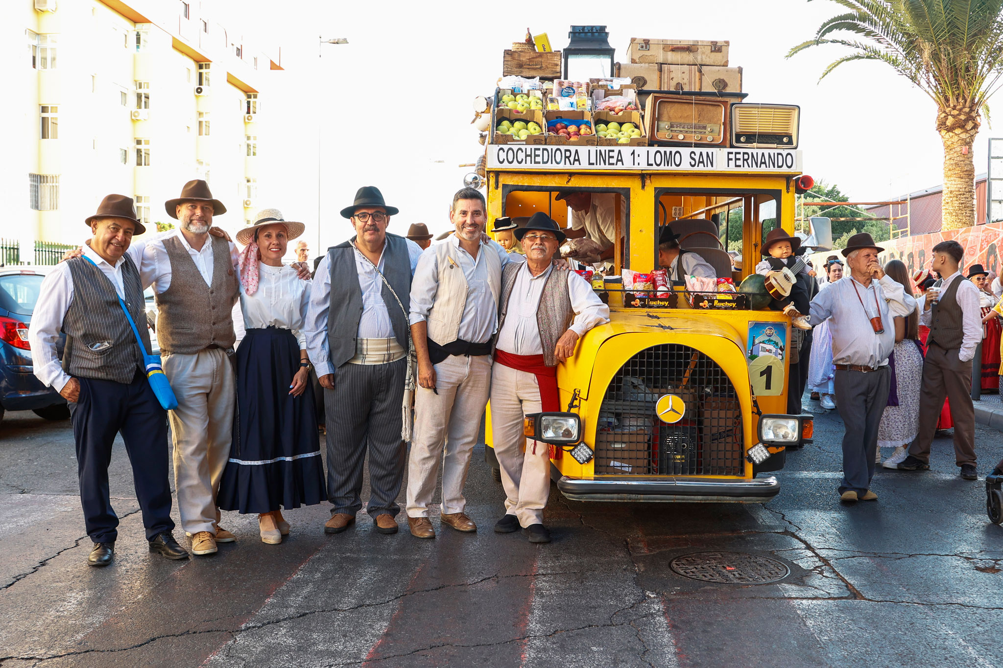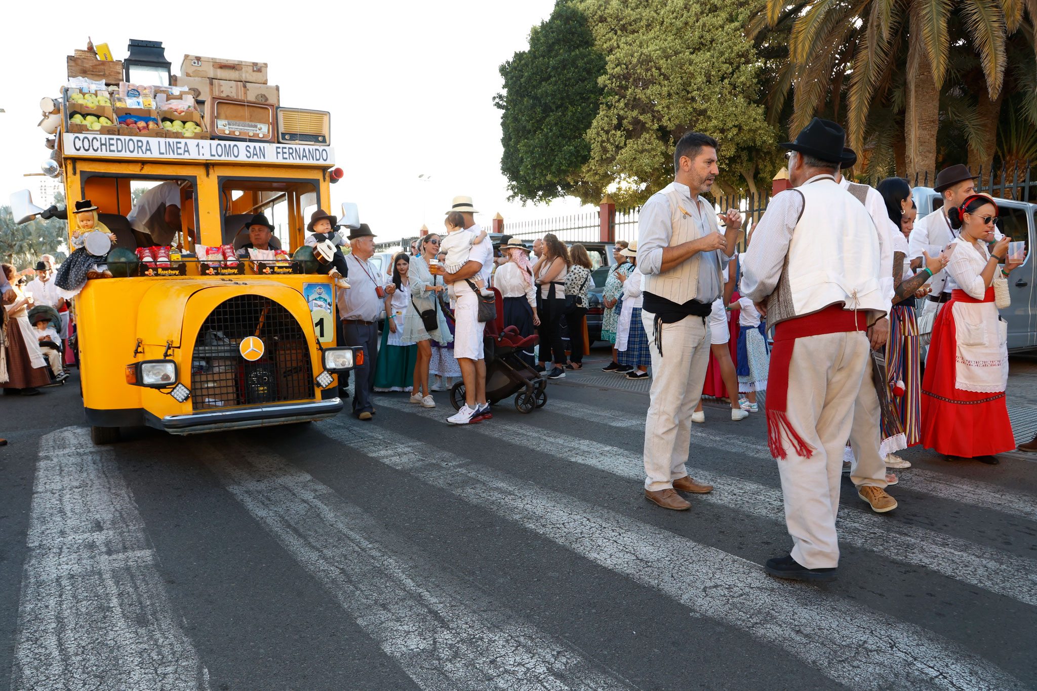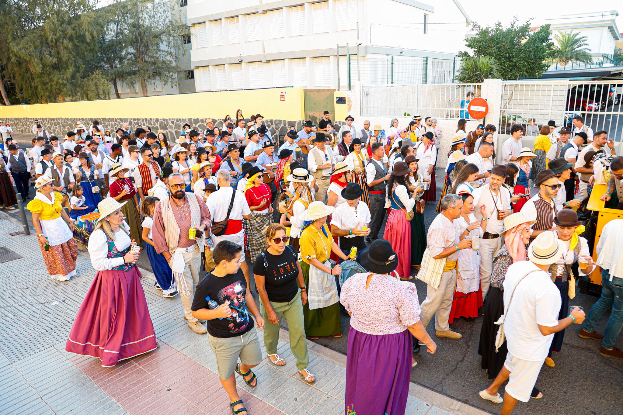 La tarde contó con la participación de más de 2.000 personas que, ataviados con vestimenta tradicional, participaron del recorrido que estuvo encabezada por la carreta El Coche de Hora, con la agrupación El Cañizo; El Tablero la Agrupación Roca Canaria y su cuerpo de baile Horizonte Maspalomas; la carroza Telde ‘La Tartana’ con los Tartaneros; El Patronato (San Fernando) con la agrupación folclórica La Parranda Las Dunas; y la carreta La Quesera con el grupo Los Fiesteros. Las Agrupación Folclórica alegraron todo el recorrido con la música tradicional canaria y tras llegar a la Plaza de San Fernando los grupos de romeros, asociaciones y colectivos depositaron su ofrenda ante la puerta de la Iglesia de San Fernando, ofrenda que será entregada a la Cáritas.