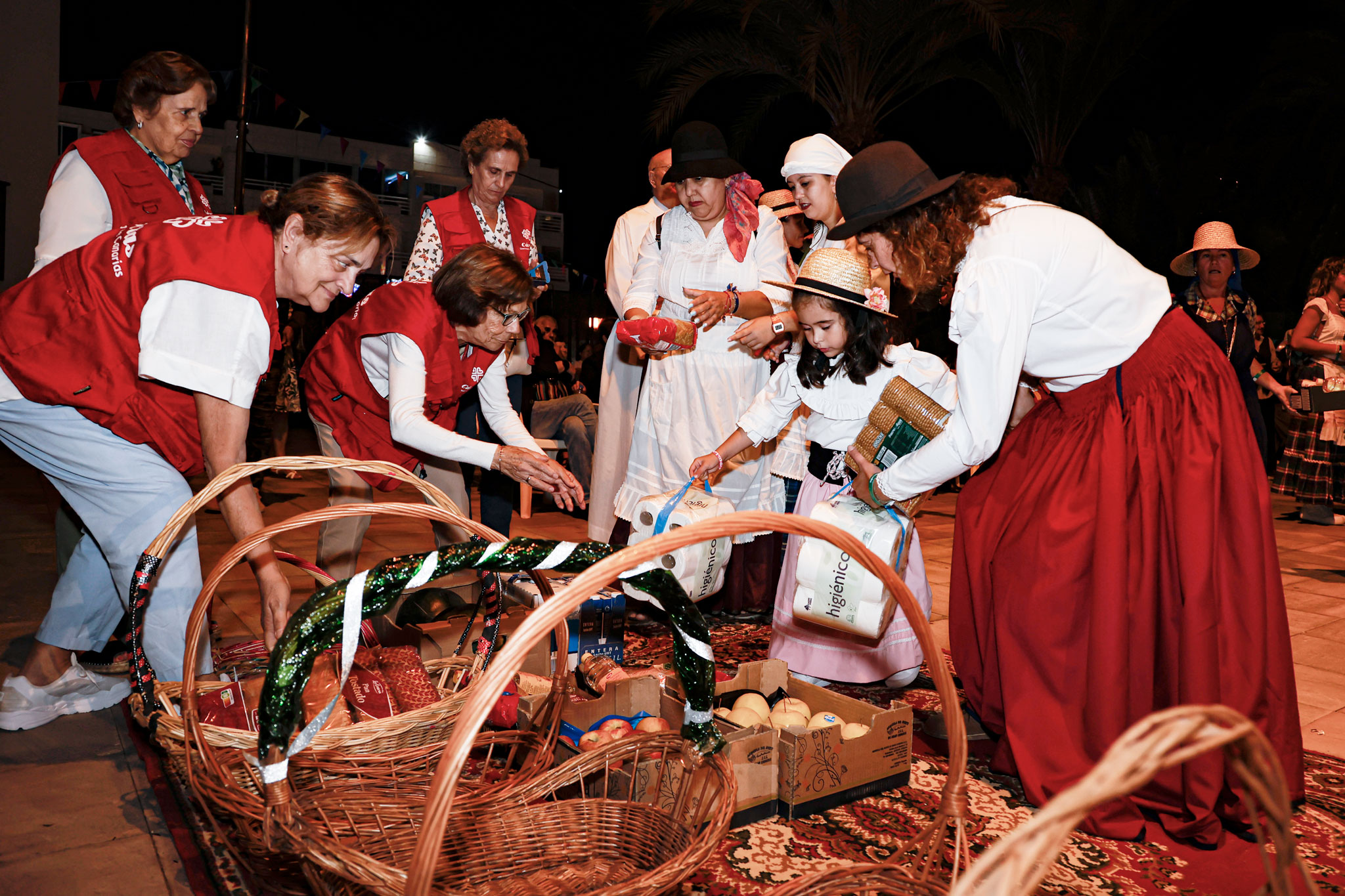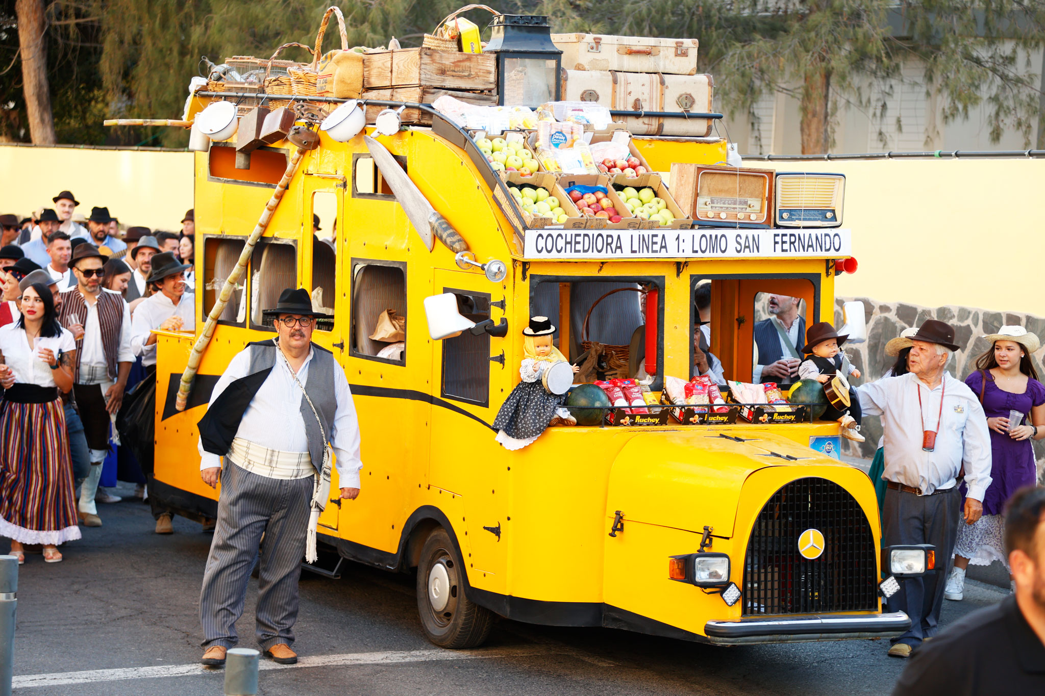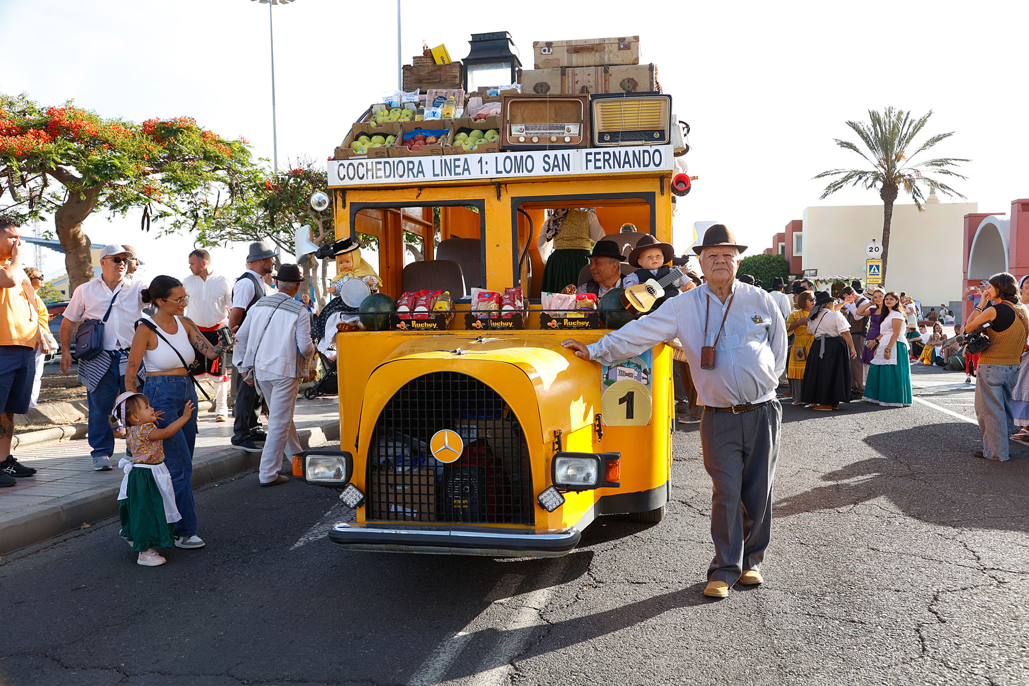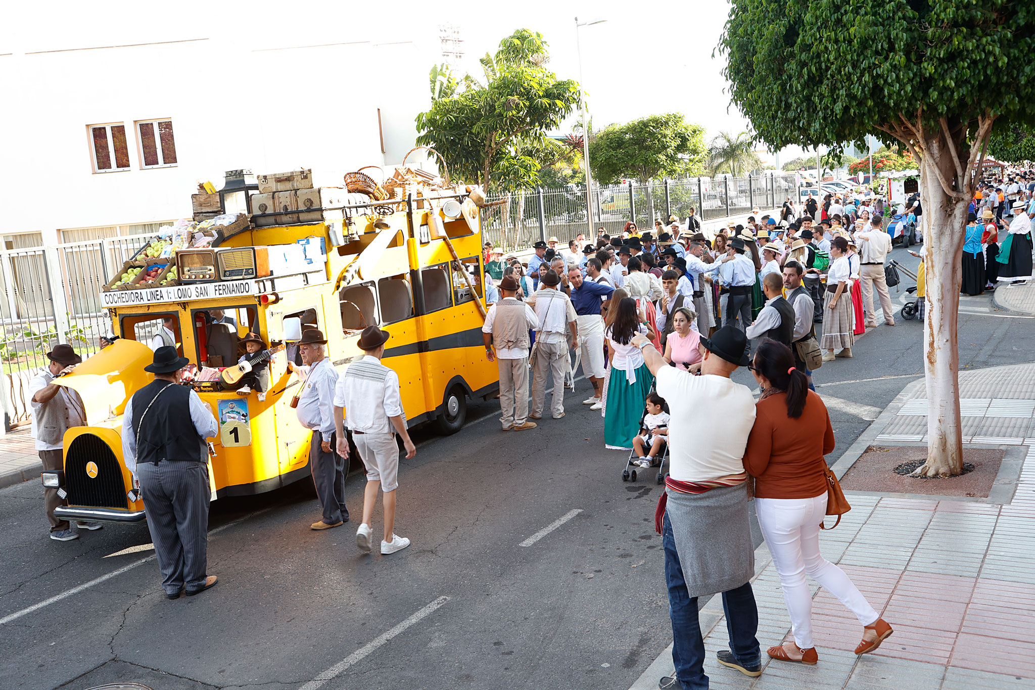 La tarde contó con la participación de más de 2.000 personas que, ataviados con vestimenta tradicional, participaron del recorrido que estuvo encabezada por la carreta El Coche de Hora, con la agrupación El Cañizo; El Tablero la Agrupación Roca Canaria y su cuerpo de baile Horizonte Maspalomas; la carroza Telde ‘La Tartana’ con los Tartaneros; El Patronato (San Fernando) con la agrupación folclórica La Parranda Las Dunas; y la carreta La Quesera con el grupo Los Fiesteros. Las Agrupación Folclórica alegraron todo el recorrido con la música tradicional canaria y tras llegar a la Plaza de San Fernando los grupos de romeros, asociaciones y colectivos depositaron su ofrenda ante la puerta de la Iglesia de San Fernando, ofrenda que será entregada a la Cáritas.