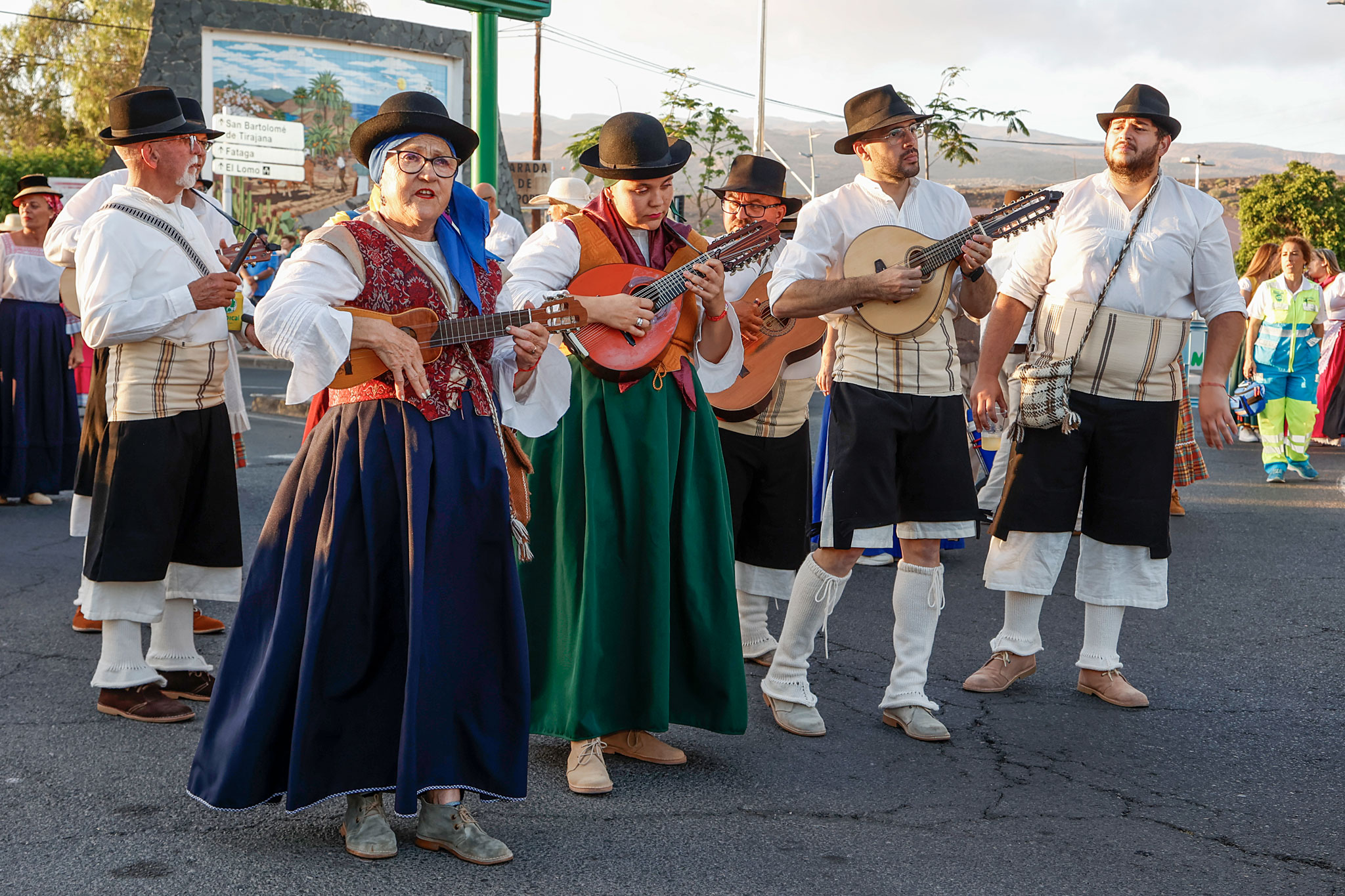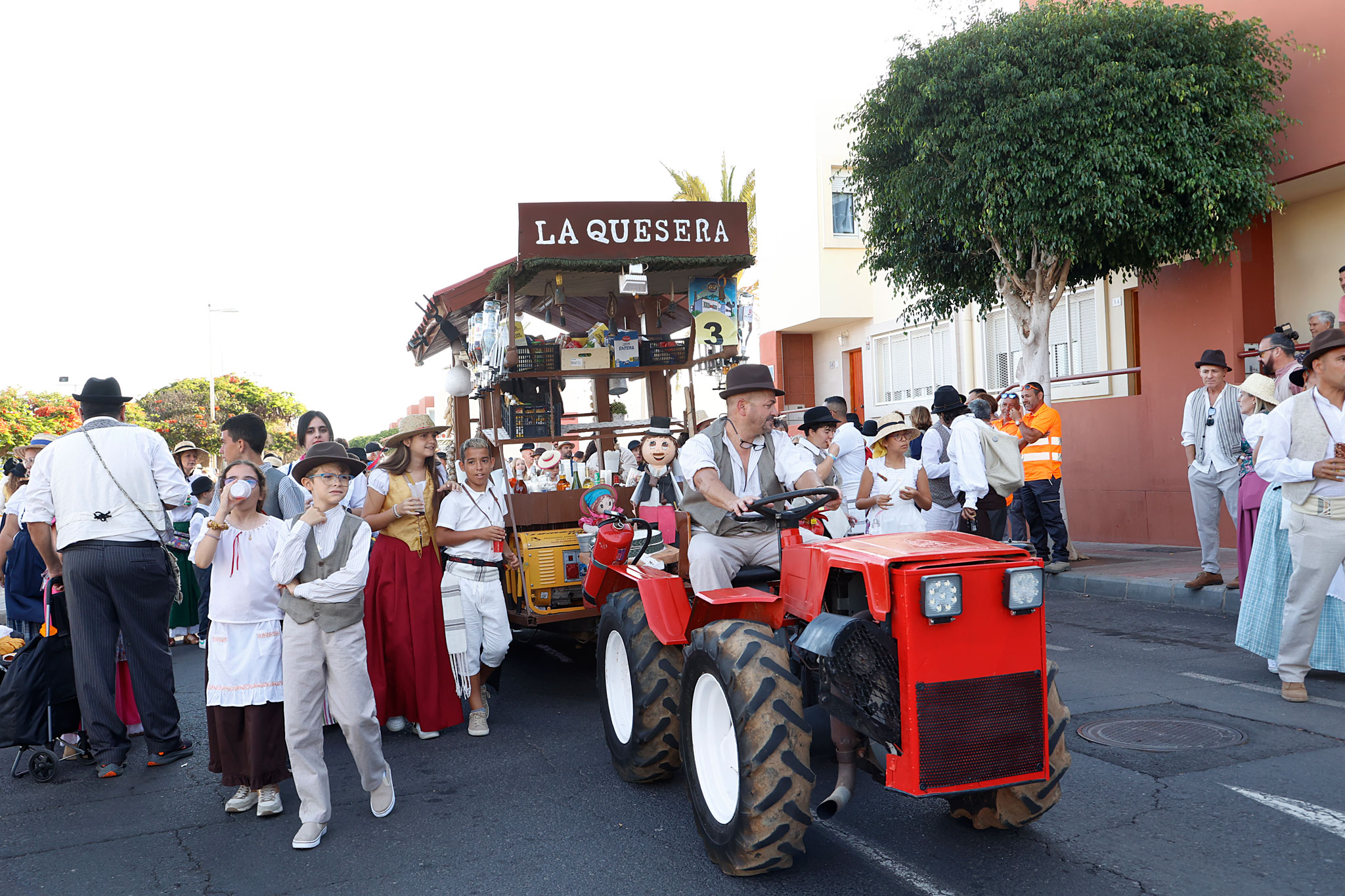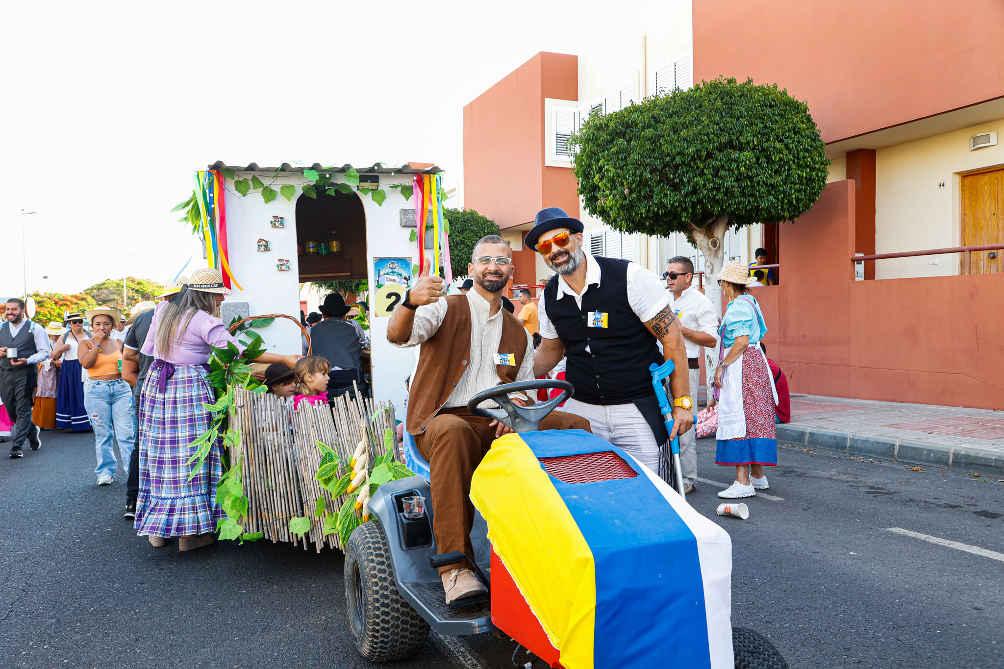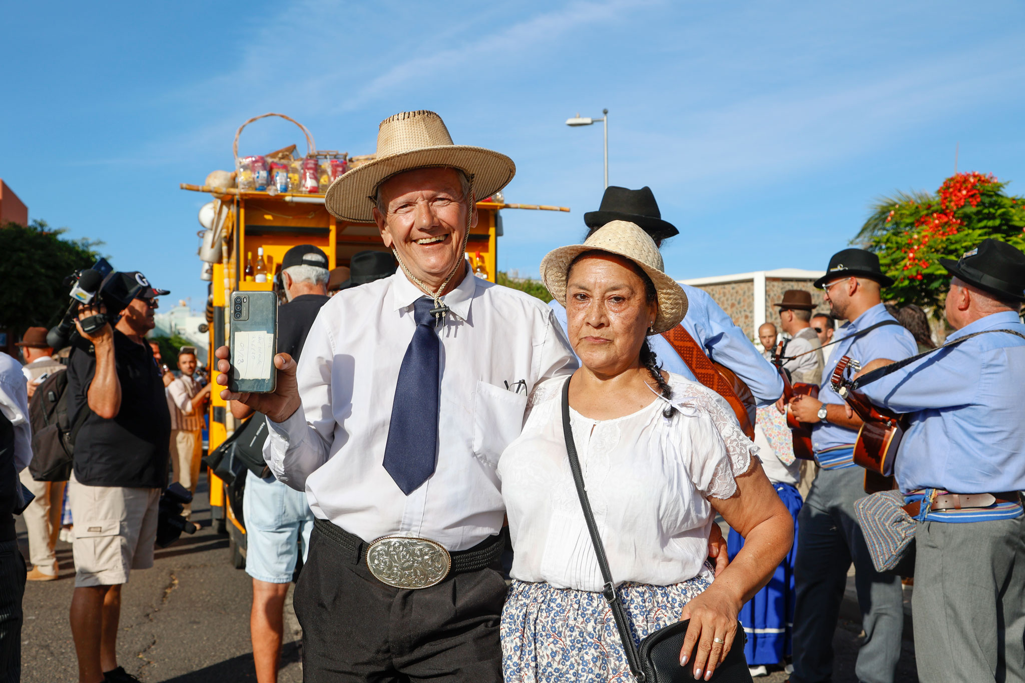 Tras el chupinazo de salida, las cuatro carretas participantes partieron al son de las agrupaciones folclóricas que pusieron la banda sonora a todo el recorrido. Así, las Isas, Folías, Malagueñas… impregnaron las calles Mogán, avenida de Tunte, de Gáldar, calle Hernández González, y la avenida de Tejeda hasta llegar a la plaza de San Fernando.